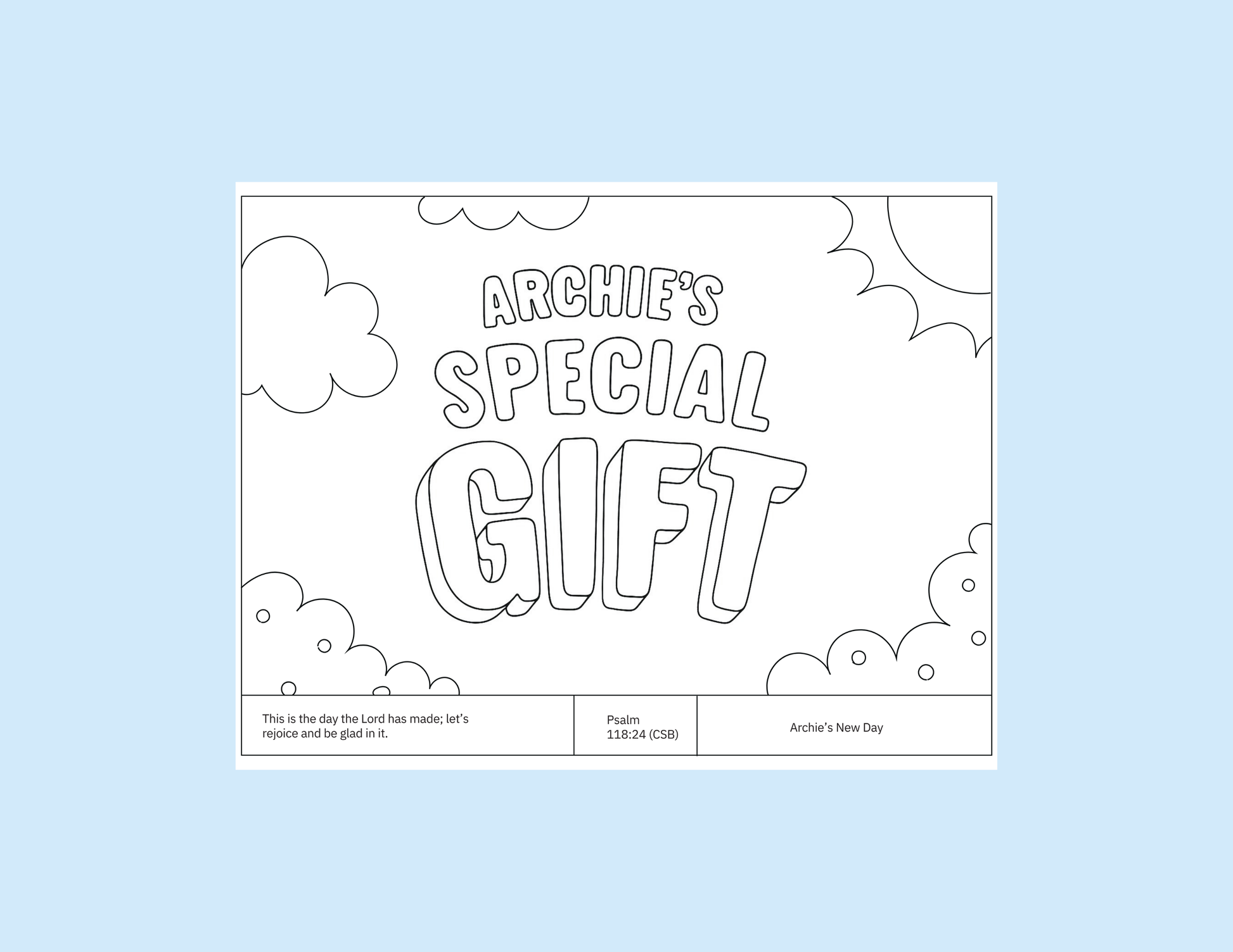 Bring faith, fun, and creativity together with Archie’s Coloring Adventure Pack! Inspired by Archie’s Special Gift, this printable pack helps kids learn how to care for God’s gifts while having fun coloring their favorite dog, Archie, and his friends.